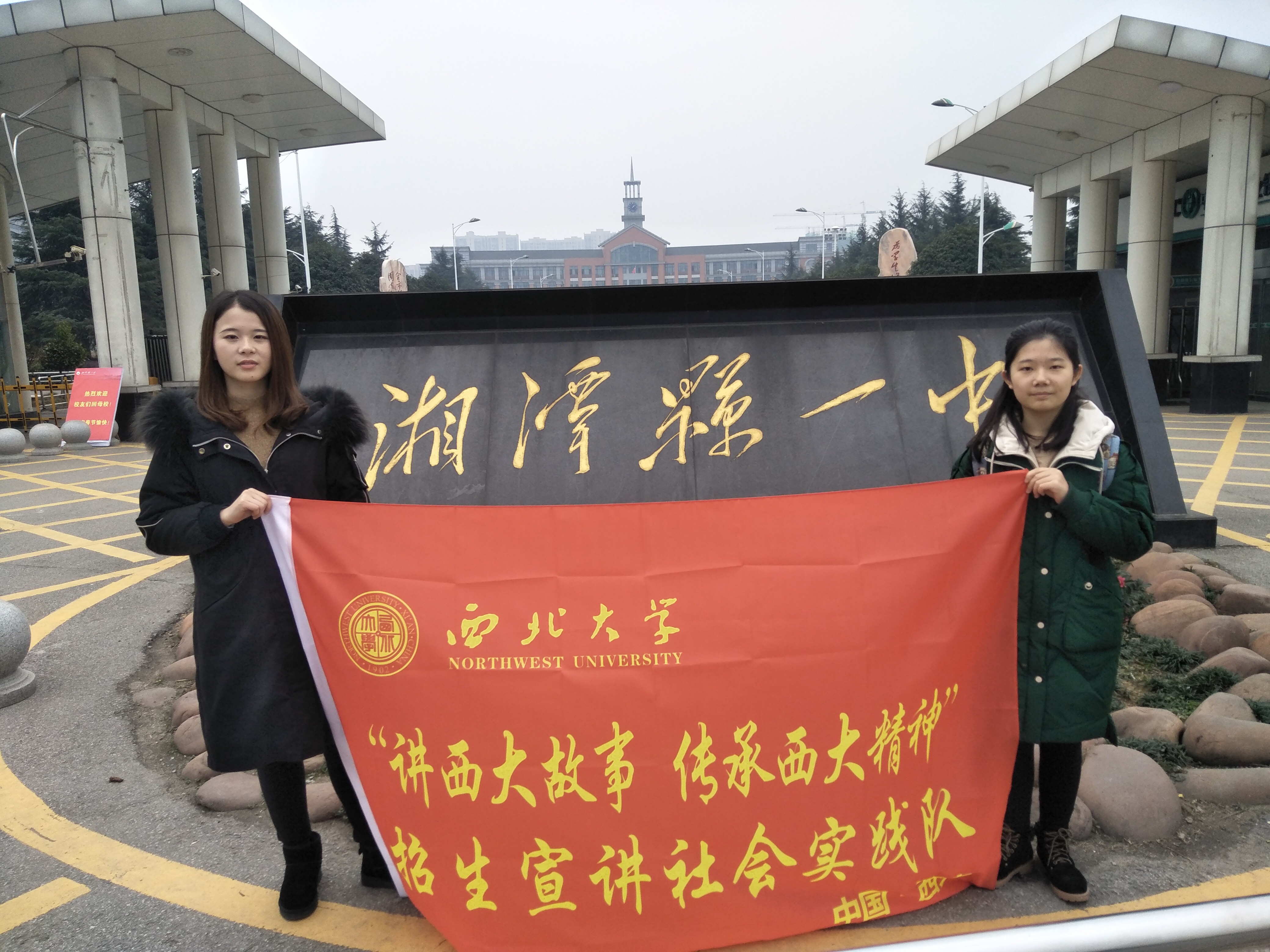 1月25日上午十点,我院本科2018级的陈茜同学和公共管理学院的吴灵燕同学组成的西北大学宣讲会湘潭县第一中学小分队,来到了湘潭县第一中学,给高三的学子们进行主题宣讲。